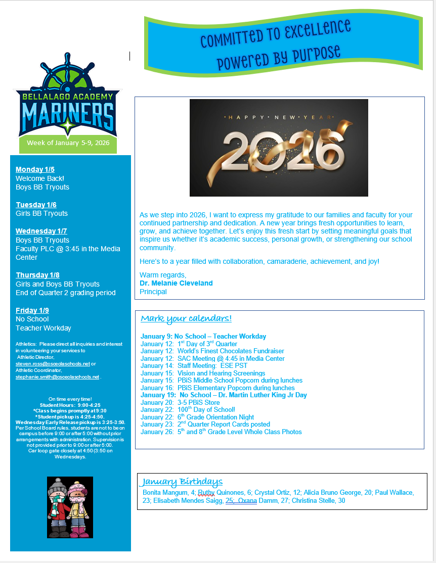 Stay up to date on the latest news from Bellalago Charter Academy and the Osceola School District!