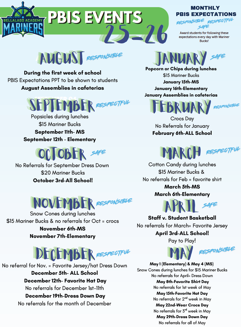 Vision: We, the Mariners of Bellalago Academy, will accomplish our mission by